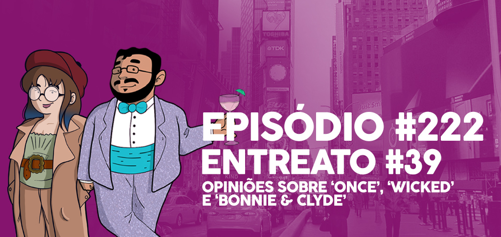 Mais um entreato saindo e dessa vez é de opinião! Nesse episódio, gravado em 01/05/2023, o Rafael Nogueira, a Letícia Saggese e o convidado Diego Galatti se reuniram para contar o que acharam dos musicais Once, Bonnie & Clyde e Wicked. E antes de dar o play, já recomendamos correr comprar ingressos para esses musicais porque está acabando!